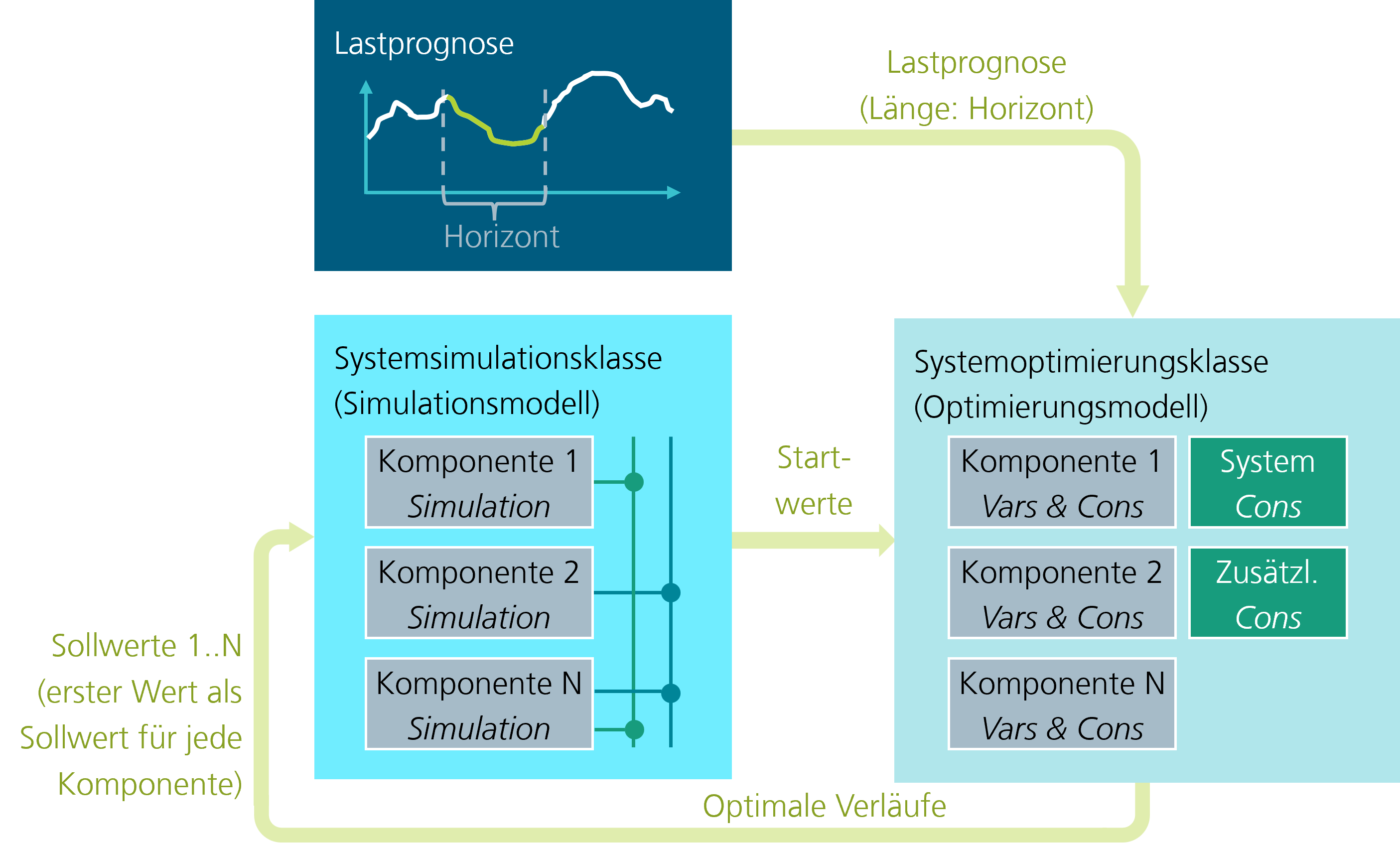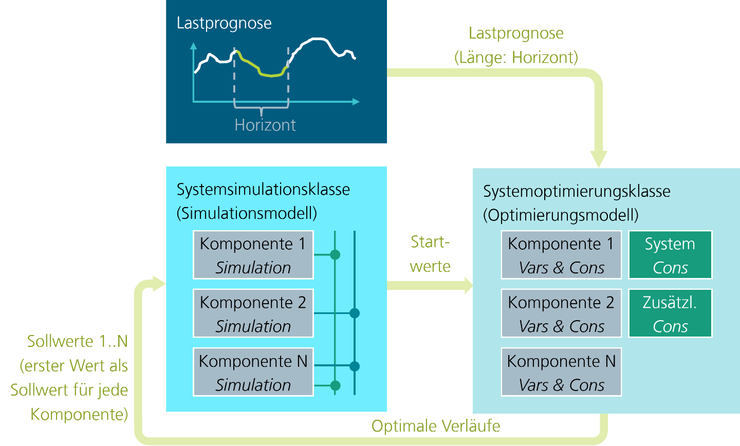 | Komponentenmodelle | Verallgemeinerter Modellierungsansatz für die energietechnischen Komponenten, der zahlreiche Anwendungsfälle abdeckt |